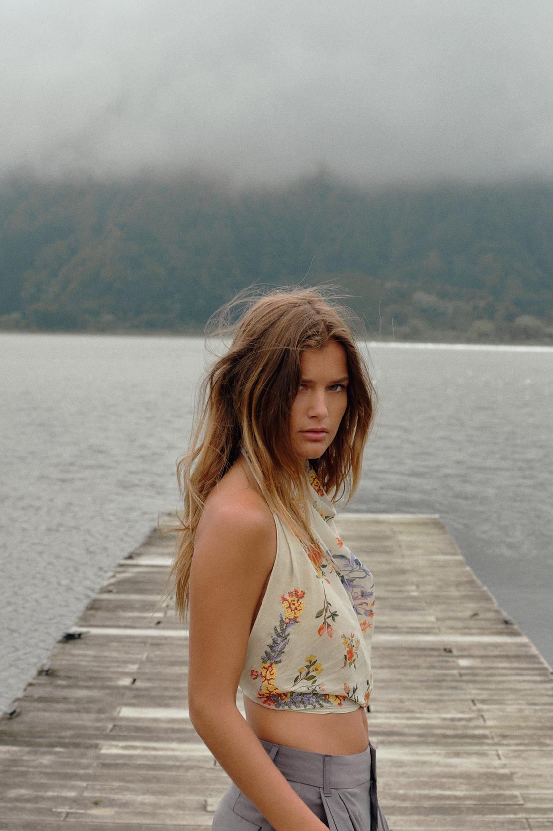 Scarf made from 100% cotton yarn. Featuring contrasting embroidered detailing.
